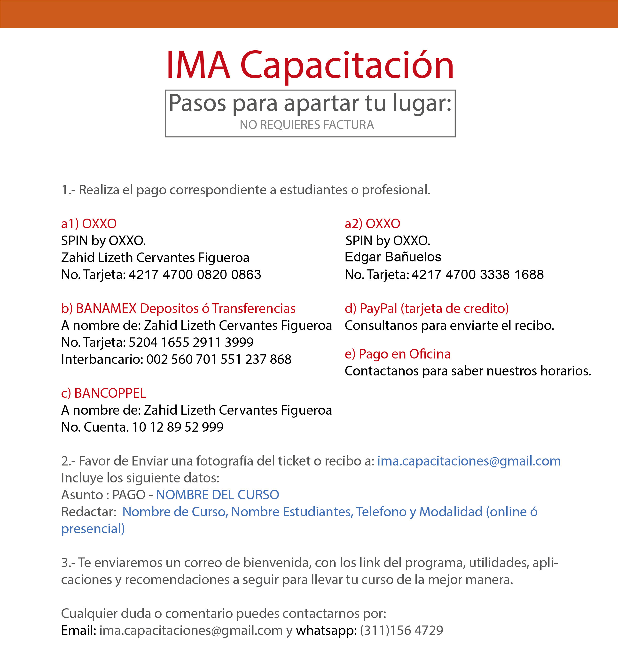 *Los pagos pueden ser en Oxxo, Banco, Transferencia, o pagar con tarjeta de crédito con PayPal.